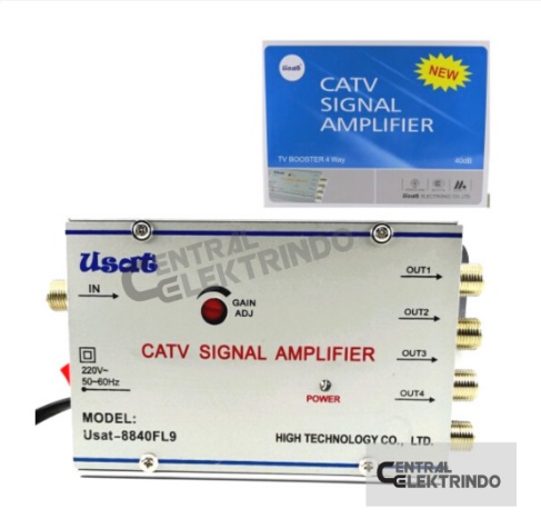 Produk penguat signal empat cabang ini kami rekomendasikan untuk anda semua yang mempunyai kualitas gambar televisi yang kurang baik karena lokasi atau dalam kondisi tertentu. Karena CATV SIGNAL AMPLIFIER ini bisa memperbaiki kualitas gambar televisi anda menjadi lebih jernih.