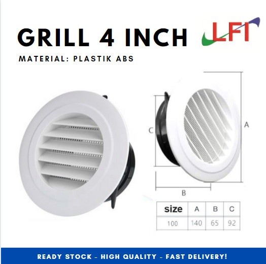 Ceiling Round Air Grill 4 inch ABS / Grill penutup inline duct 4 inch