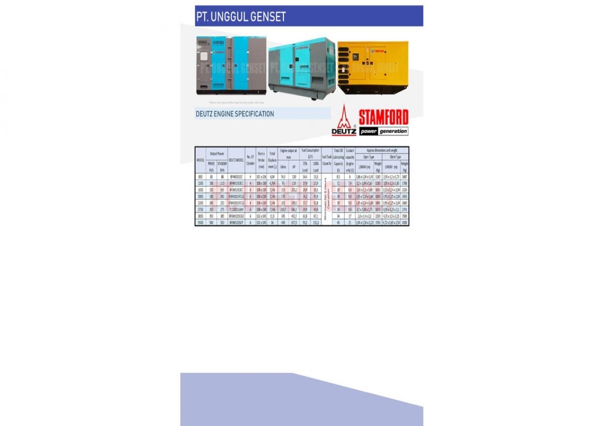 | Nama | : | DEUTZ 80 – 500 KVA |