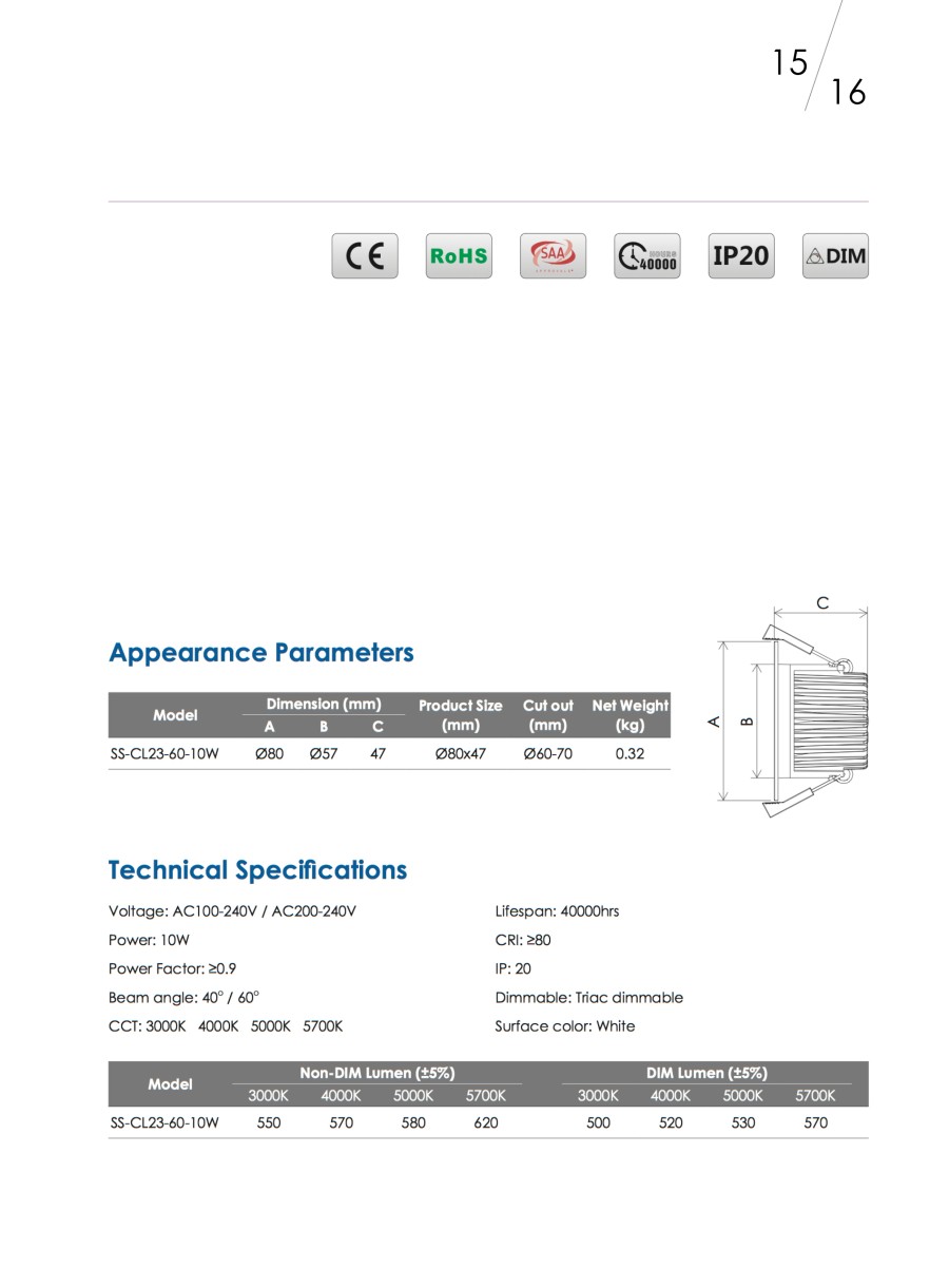 Downlight LED CL23 solusi nya. Dengan cahaya 10 Watt, Beam Angle 60°, Downlight LED CL23 menghasilkan cahaya sorot fokus untuk kebutuhan area “Detailed work” (area yang membutuhkan iluminasi / pencahayaan lebih di atas rata-rata).