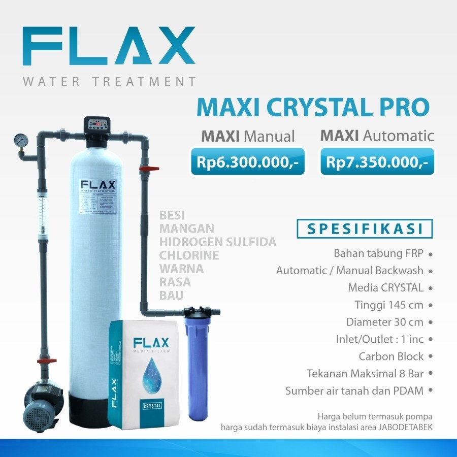 Dengan fitur yang lengkap, Crystal Pro sangat efektif mengatasi kekeruhan, mangan, besi, warna, hidrogen sulfida.