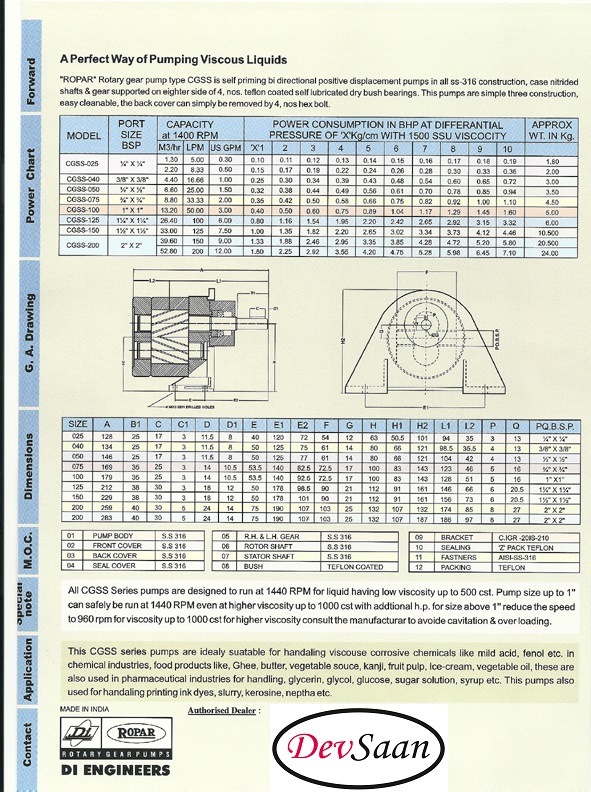 Spesifikasi pompa gear CGSS :