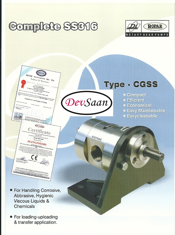 Aplikasi pompa gear CGSS :Â Produk Makanan dan minuman seperti kecap manis, saos sambal, minyak goreng, mentega, minyak sawit, cpo, glukosa, glikol, gula cair, pulpa buah, sirup marjan, kimia, lem, pasta, krim, susu kental, yogurt, es krim, sirup dan lain-lain.