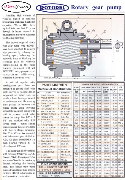 Spesifikasi gear pump rotari RDNX :