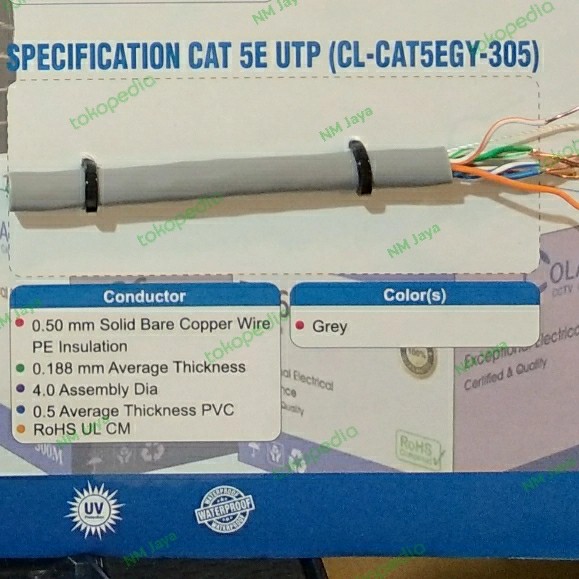 Kabel Lan Utp Cat5e Full Copper 305meter warna abu-abu