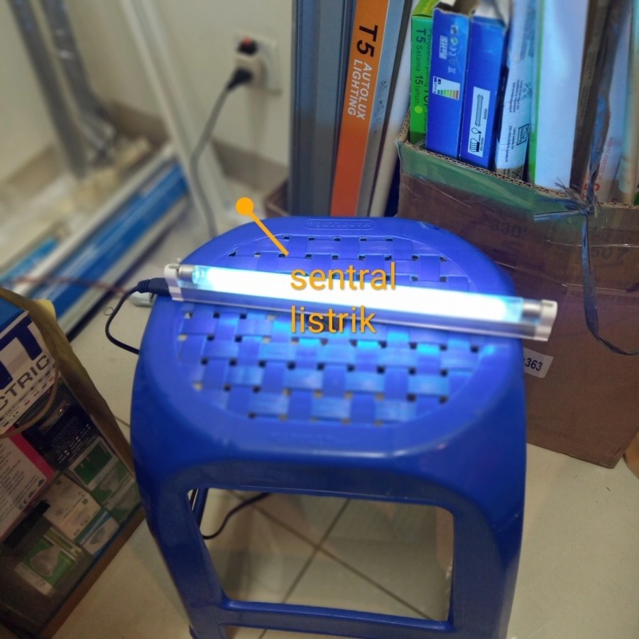 Lampu UVC steril germicidal untuk steril virus, bakteri dan kuman.T5 8watt komplit set dengan kabel colokan. Panjang lampu 31 cm.