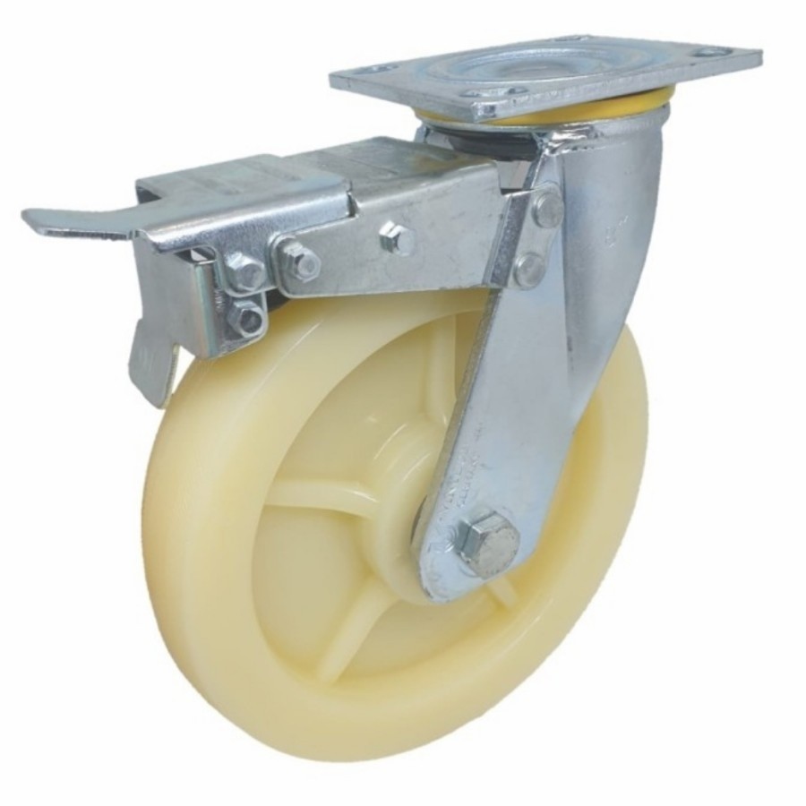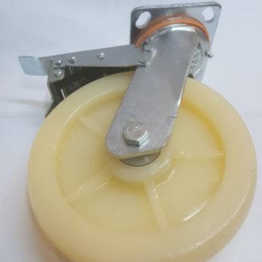 Ukuran Plat : 115 x 98 mm.Jarak lobang baut : 82 x 70 mm.Tinggi roda : 242 mm.