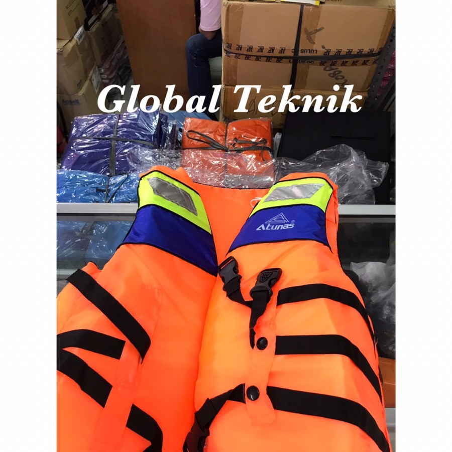 Life jacket /pelampung merk ATUNAS untuk menjaga keselamatan olah raga air, seperti: banana boat, rafting, snorkeling, dll. life Jacket merupakan standar keselamatan untuk setiap angkutan laut.