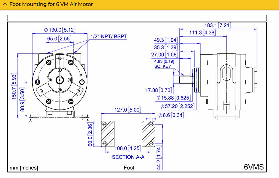 Jual Vane Air Motor 6VM 4 Hp Foot Mounting – NPT – ATEX – Lubricated – 6VMSALEXR