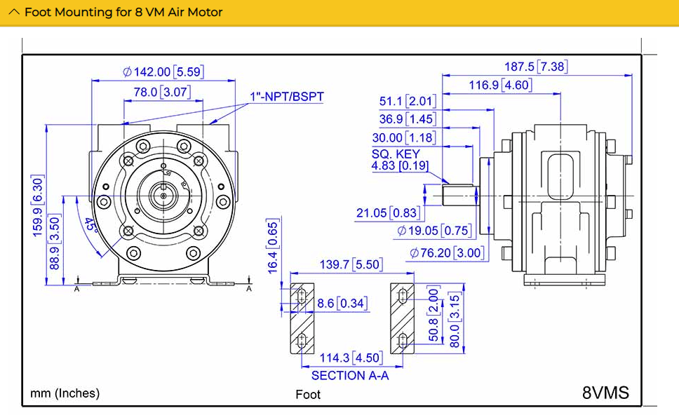Jual Vane Air Motor 8VM 5 Hp Foot Mounting – BSPT – ATEX – Lubricated – 8VMSALEXG